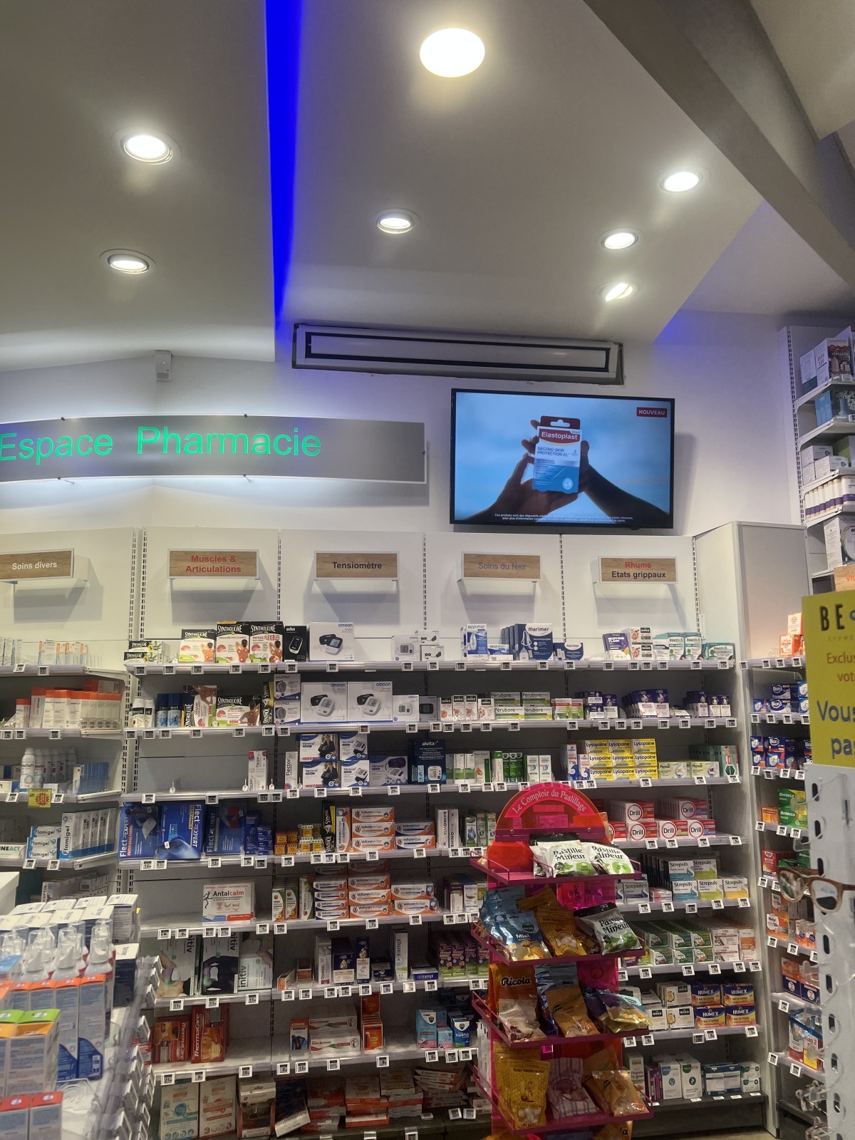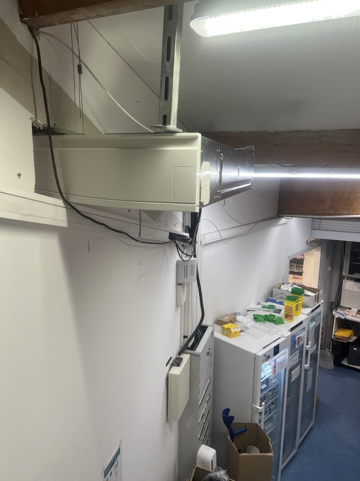 Pour répondre aux exigences strictes de conservation des médicaments et de confort des patients, nous avons réalisé l'installation de 3 plafonniers de 12 kW. Cette solution est idéale pour les grands espaces de vente car elle libère la surface au sol tout en assurant une diffusion homogène de l'air.